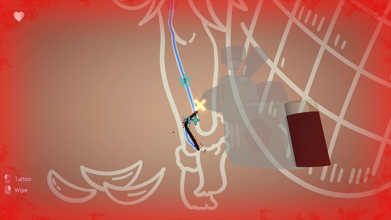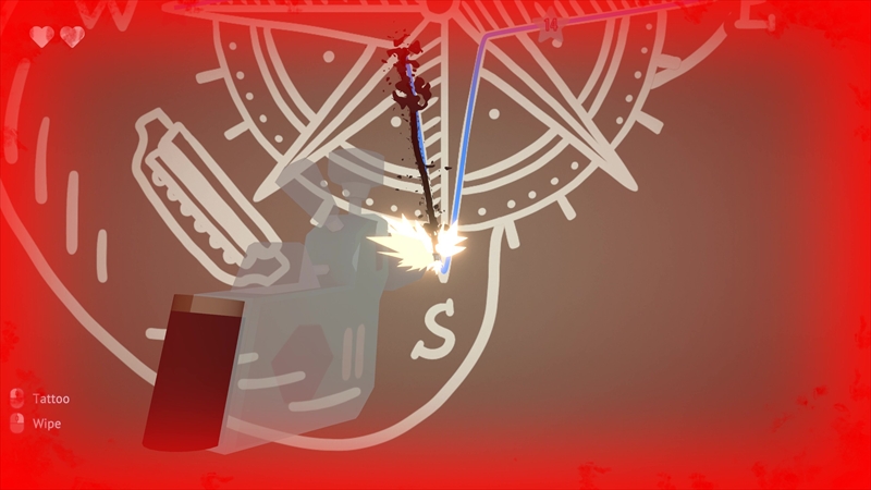 長く彫り続けると客が痛がるので、都度休憩(Wipe)を挟む必要がある。休憩をしないとハートマーク(客の体力)が減り、すべて失うと怒って帰ってしまう