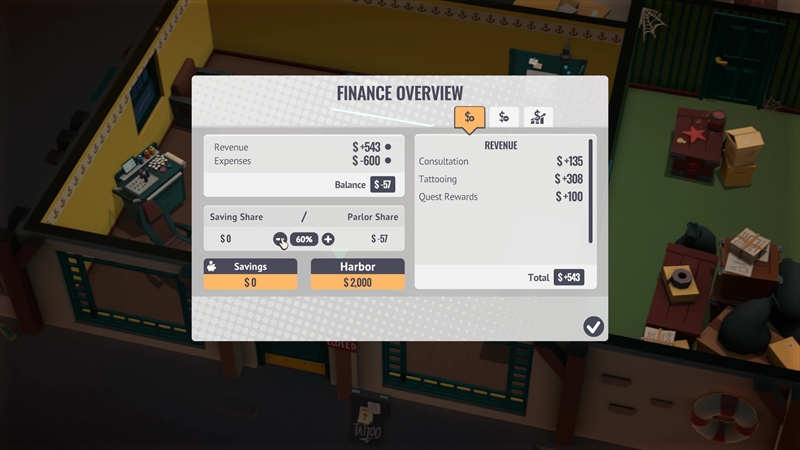 『Tattoo Tycoon』の舞台となる「タトゥガ・ベイ」はかつてタトゥー文化の街として栄えていたが、経営難などでタトゥーショップは次々と閉店。最後に残ったのは主人公が働くお店のみとなったわけだが、経営不振により閉店を余儀なくされる。