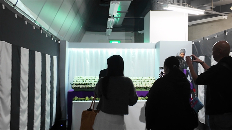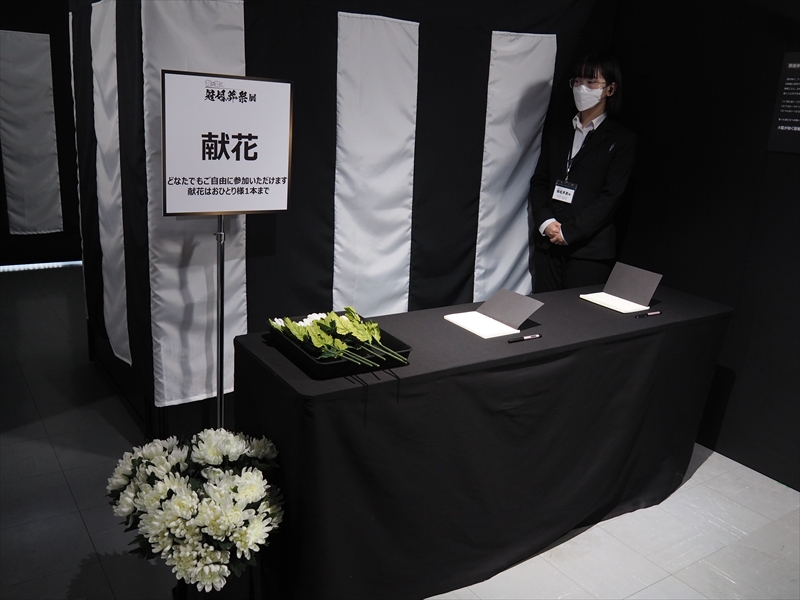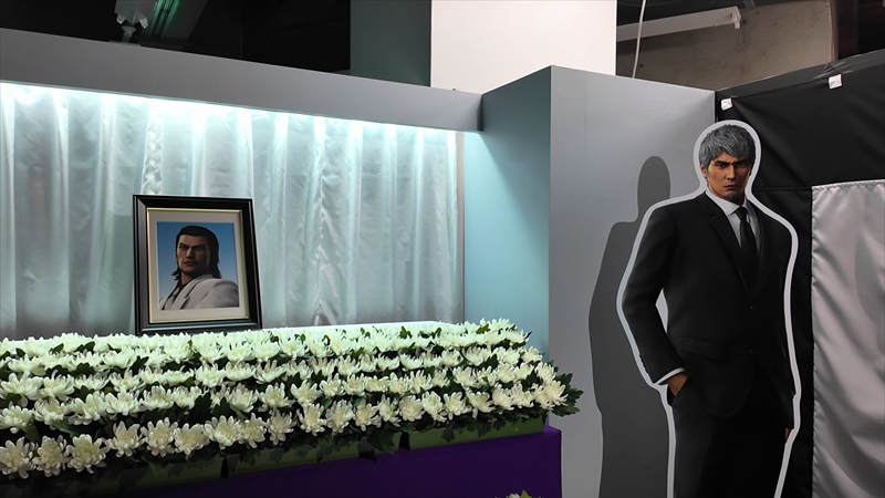 婚エリアの先の葬エリアにある「葬儀会場」は、仁義の果てに命を燃やした男たちを弔う特別コーナー。キャラクターたちを追悼する葬儀体験や、本イベント限定のキャラクタースペシャルボイスなどが展開される。キャラクタースペシャルボイスは、時期に応じて変化する。