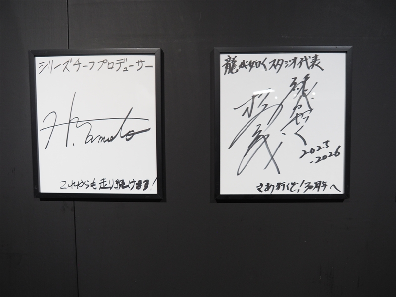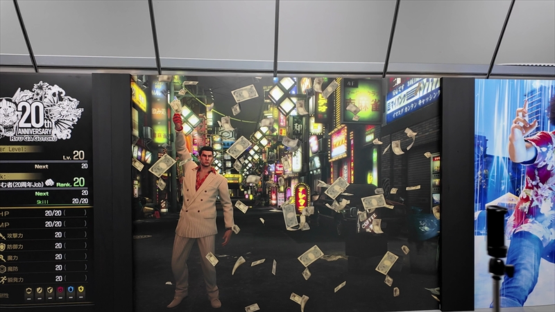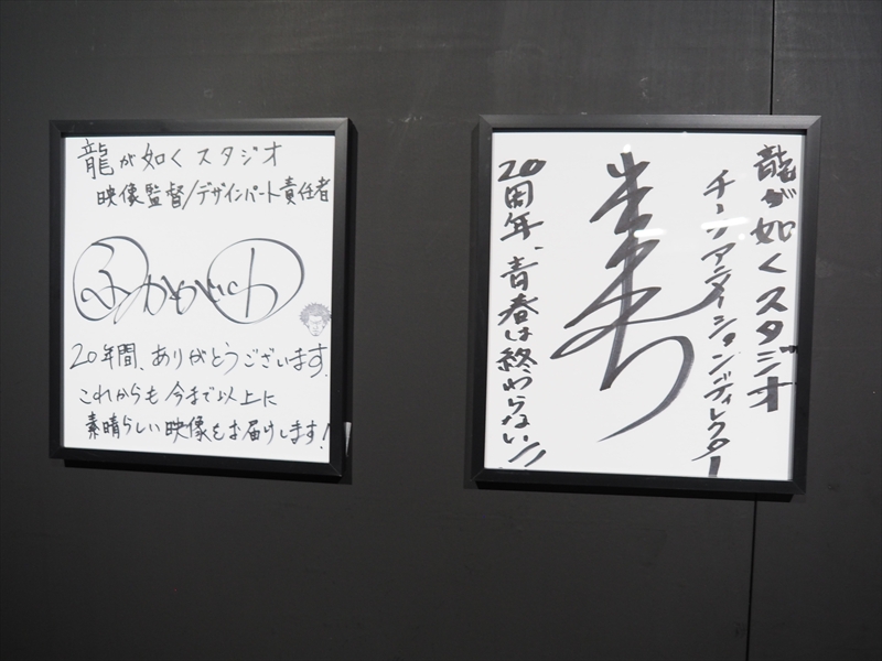 さらに奥に進むと祭エリアとなり、さまざまなフォトスポットや、20歳のキャラクターパネル、メッセージコーナーがあり、『龍が如く』ファンにはたまらない撮影が行なえる。