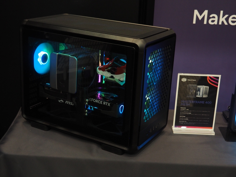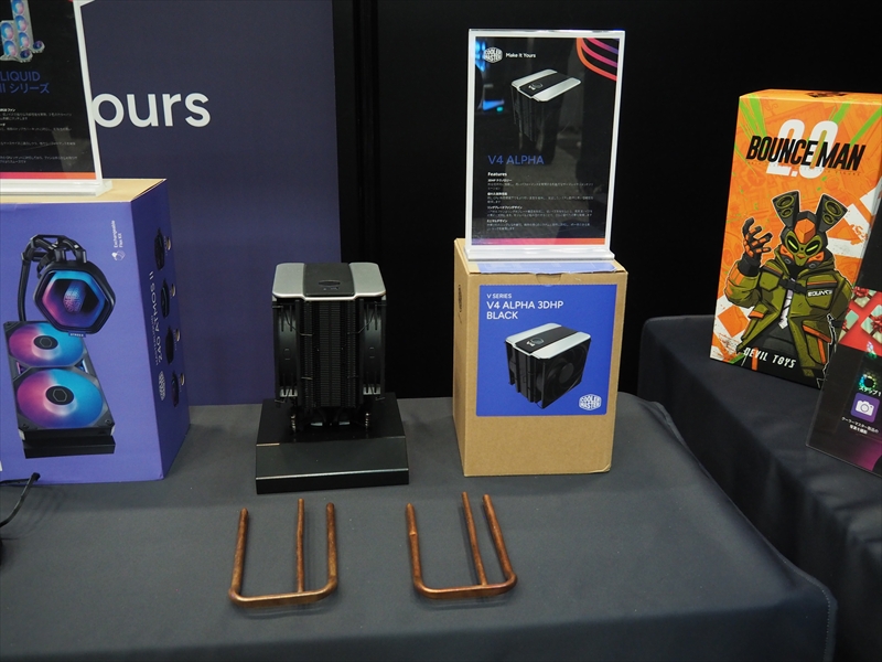 Cooler Masterのブースには、前面にディスプレイを搭載し、DEVILTOYS BOUNCE MAN 2.0フィギュアを飾ったカスタムPCが置かれていた
