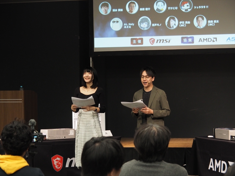 イベントは2部構成。最初は「インフルエンサーPC早組大会」が行なわれた。MCにはUNLIMIT所属の田森就太氏、MSIのイベントではお馴染みの声優/役者/イベントキャスターの伊石真由さん。