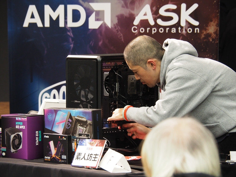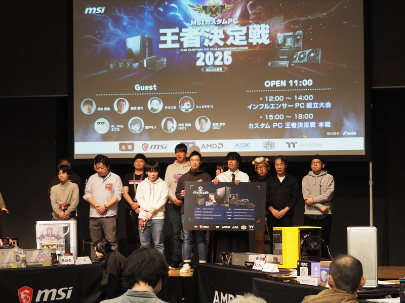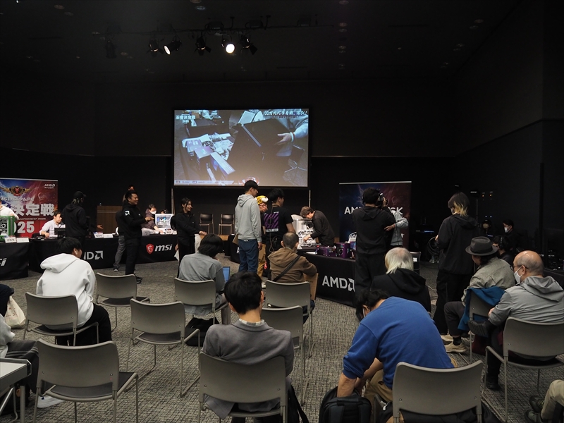 審査員はスポンサーメーカーである日本AMD、Cooler Master、Thermaltakeの担当者、ならびにMSIの代表としてインフルエンサーの早組にも参加された清水貴裕氏、今回のイベントの放送を担当したアスキー編集部のジサトライッペイの5名。