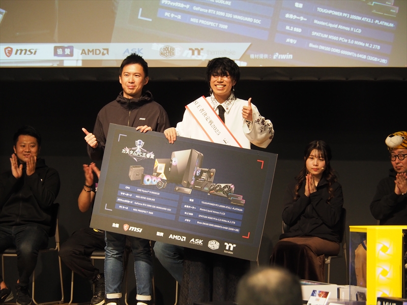 限られた時間のなか、素晴らしいパフォーマンスを見せた6名だったが、優勝したのは175ポイントを獲得したすばるさん。すばるさんには、100万円相当のPCパーツが贈られた。