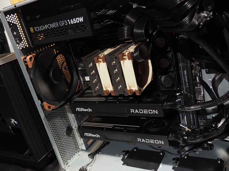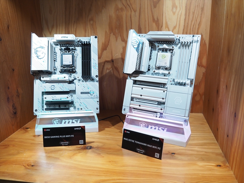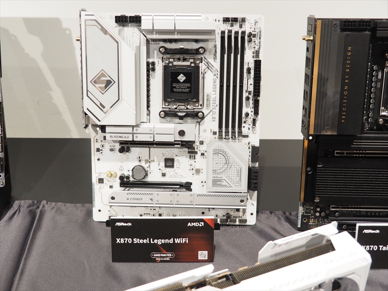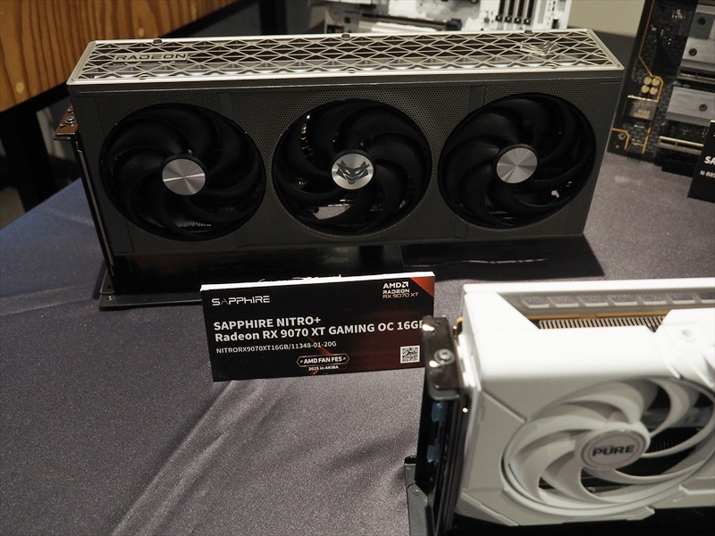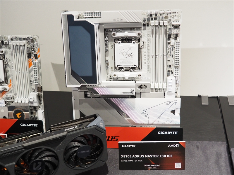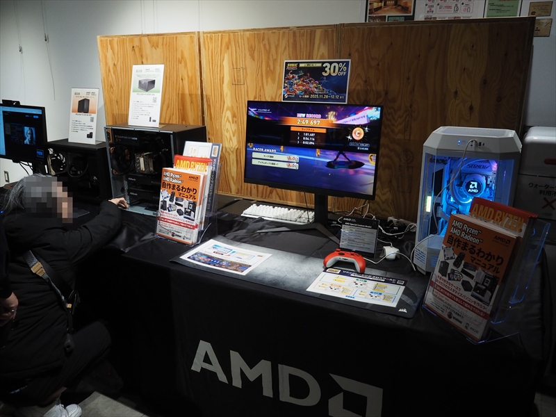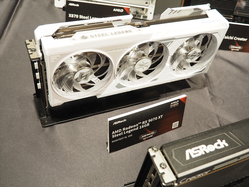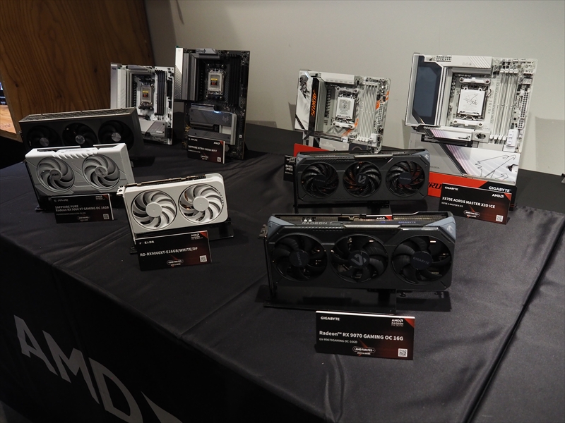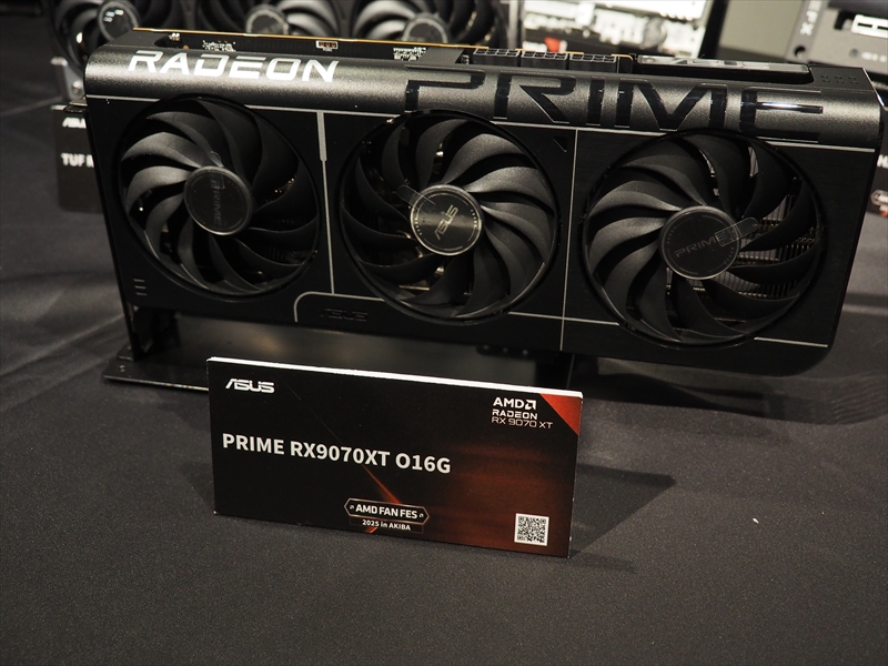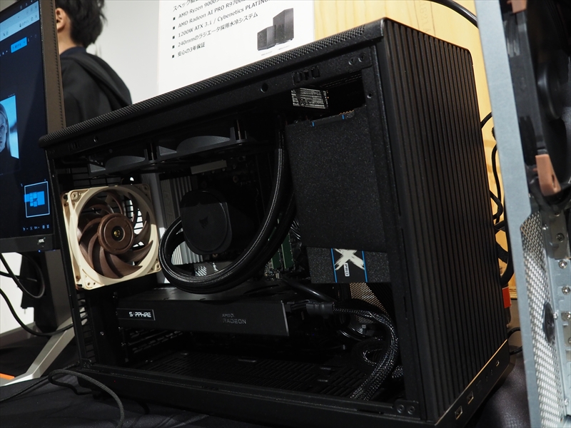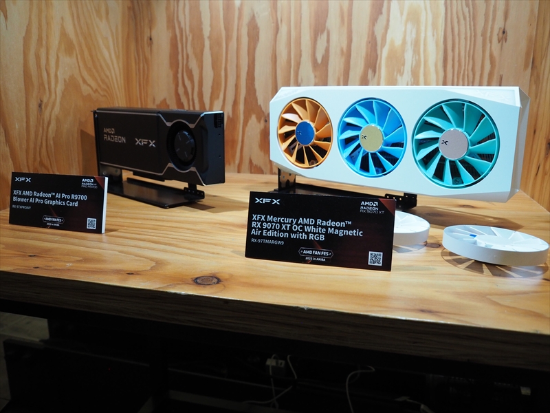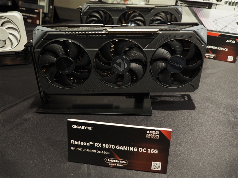 セガが最新AMD環境を使った検証データも披露!さらに増えたPCパーツメーカー勢ぞろいにgradeon卿も参戦、最新情報も盛りだくさんだった「AMD FAN FES 2025 in AKIBA」レポ 2025 12/07 PCパーツ イベントレポート 2025年12月7日 目次文●ハッチ AI作業にも向く高性能PCや、各パーツメーカーの最新パーツがズラリと展示 また、各パートナーメーカーのAMD製CPU、ビデオカード搭載PCや、マザーボード、ビデオカードといったパーツも展示されていた。 Ryzen Thredripper PRO 90000/7000WXシリーズに、AMD「Radeon AI PRO R9700」(会場展示品は、R9700×2)などが搭載可能。OSはLinux OS動作確認済み(テストはUbuntu OS)と謳う、エルザ・ジャパンの「VELUGA-R A50E G6L」。CPUクーラーはNoctuaの空冷クーラーとしては最上位の「NH-D15 G2」と思われる 木製のフロントパネルを採用したエルザ・ジャパンのミニPC「VELUGA-R A30 G6 SFF」。AMD「Ryzen 9000シリーズ」対応、AMD「Radeon AI Pro R9700」などを搭載可能。240mmの簡易水冷クーラー、安心の3年保証 ケースにThermaltakeの「The Tower 250 Snow」を採用したAMD Apecial Custom Model。CPUがAMD「Ryzen 7 9800X3D」、ビデオカードがSapphire「PURE AMD Radeon RX 9060 XT GPU」、マザーボードがGIGABYTE「X870I AORUS PRO ICE」、メモリがCrucial T710 2TB、SSDがCrucial Pro DDR5-6400 64GB Kitとなっていた 玄人志向としては珍しいホワイトカラーのビデオカード。幅202mmとコンパクト Sapphireの定番シリーズNITRO+のRX 9700 XT。上部の網目状の下から淡くLEDライティングが漏れる仕様。マグネット式で着脱できるバックプレートも搭載 GIGABYTEが2025年に発表した新イメージキャラクター「神鷹凛」をテーマとしたマザーボード シックなブラックなビデオカードも おしゃれなデザインで人気のASUSのPRIMEシリーズのビデオカード ASRockは、クリエイター向けのビデオカードとマザーボードも展示 ホワイトカラーで定番のSteel Legend XFXはマグネットでカラフルなファンが着脱可能なビデオカードを展示 MSIはスタンダードクラスのTOMAHAWKの最新モデルなどを展示 1 2 3 4 5 6 PCパーツ イベントレポート この記事が気に入ったら いいね または フォローしてね! Follow @LevelupLogy よかったらシェアしてね! URLをコピーしました! URLをコピーしました! コメント コメントする コメントをキャンセルコメント ※ 名前 ※ メール ※ サイト 次回のコメントで使用するためブラウザーに自分の名前、メールアドレス、サイトを保存する。 CAPTCHA コード
