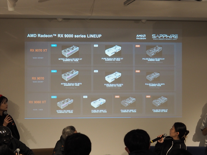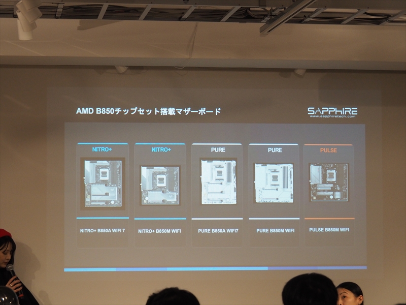 アスクの中島氏は、Sapphireのビデオカードとマザーボードのラインアップを紹介。Sapphireにもホワイトカラーのビデオカードがあるため、白PC自作にぜひ検討して欲しいと言及した。