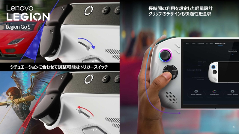 CESでは「Legion Go S」にカラーが黒でSteamOSを搭載したモデルも発表していたが、海外では既に発売されているものの、日本ではWindows版でのみ発売する。そうした、どのモデルを発売するかも含め検討していたことで、国内での発売は遅れたとしている。