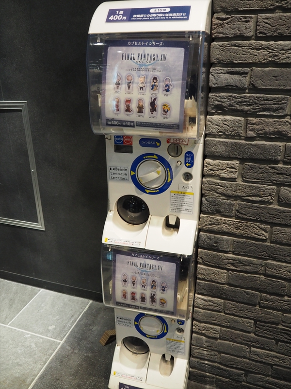 先行販売の3商品に加え、カプセルトイの「ファイナルファンタジーXIV ミニアクリルブロックコレクション Vol.2」も展示されていた。カウンターの傍にカプセルトイマシンが置かれていたが、その中身は「ファイナルファンタジーXIV ミニアクリルブロックコレクション Vol.1」で、「ファイナルファンタジーXIV ミニアクリルブロックコレクション Vol.2」はカウンターで注文できるようになっていた。最大10点まで同時購入可能だが、中身はランダムになっている。