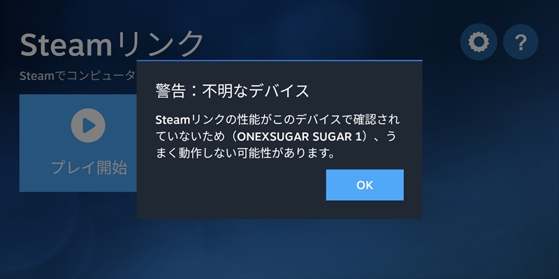 高性能なPCに接続してPCゲームをプレイするリモートプレイや、クラウドゲーミングも試してみた。「Steam Link」では、「ONEXSUGAR SUGAR1」が推奨デバイスではないため、動作しない可能性があると警告のポップアップは出たものの、キーマッピングすることなくPCに接続してSteamのゲームがプレイできた。