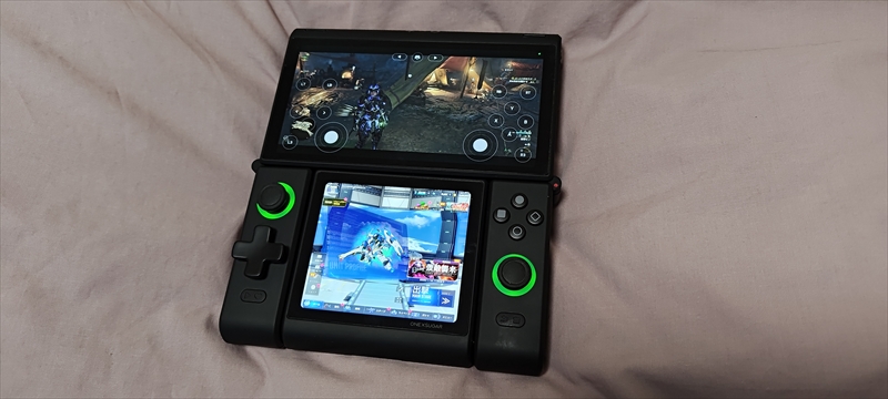 一方で、「ONEXSUGAR SUGAR1」はセカンドディスプレイの横にコントローラーを動かしても、LRボタンが操作できるように奥に飛び出した狭いスペースに左右に並んでいる。そのため、レースゲームなどでR1を押しっ放しでドリフトをしようとするとやり辛かったり、奥のR2を押す際にR1に触れて誤動作をさせてしまう可能性を感じた。