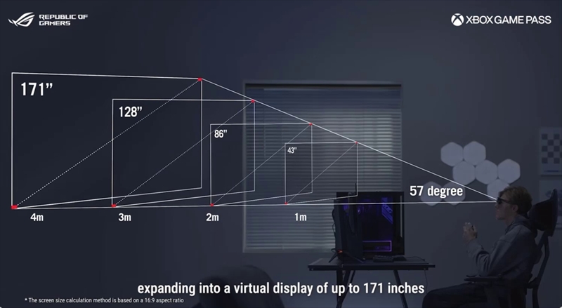 視野角は57°で、4m先に最大171インチの仮想スクリーンを投影し、集中視認エリアの95%をカバー。顔の動作に追従するフォローモードと、画面を固定するアンカーモードの表示オプションに対応する。