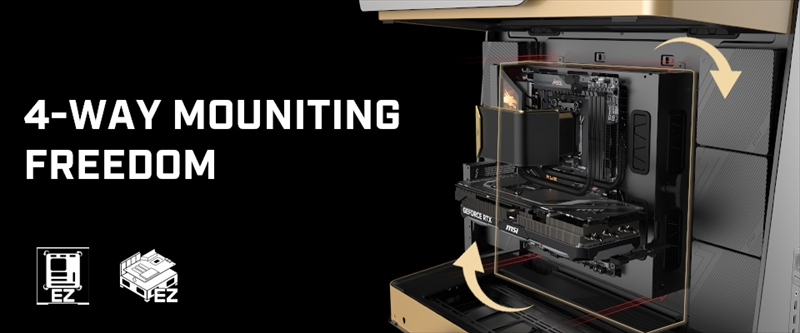また、同社はPC自作が複雑で手間がかかりがちであることを理解し、組み立てをよりシンプルで快適なものにしようとしている。そこで登場した新開発の4方向対応マザーボードトレイは、取り外して外部テストベンチとして使用でき、最終組み立て前にシャーシ外でコンポーネントの取り付け、設定、ストレステストを行えるという。