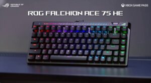 ASUSは、米・CES2026にてROGブランド初のラピットトリガー搭載75%とコンパクトなレイアウトのキーボード「ROG Falchion Ace 75 HE」を発表した。