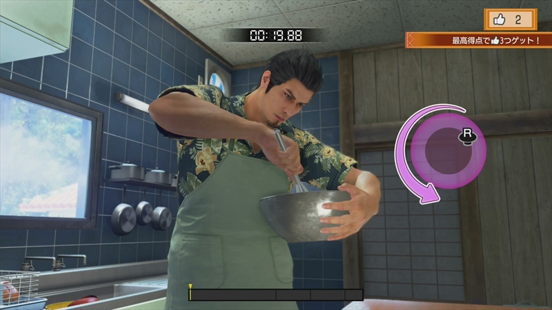 次は、アサガオライフと呼ばれるコンテンツ。作中に登場する児童養護施設「アサガオ」にて、桐生がミニゲームを通して子どもたちと絆を深めるというものだ。宿題の手伝いや料理、裁縫などのミニゲームで子どもたちの悩みを解決し、「パパランク」を上げていき、最高のパパを目指すことになる。