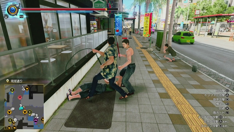まずはバトルシステムから。桐生一馬は豪快な喧嘩アクションが特徴的だが、『龍が如く 極3』ではデフォルトの「堂島の龍・極」に加えて、舞台の沖縄にちなんで「琉球スタイル」と呼ばれる戦闘スタイルも利用できる。