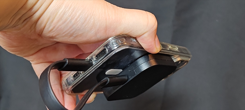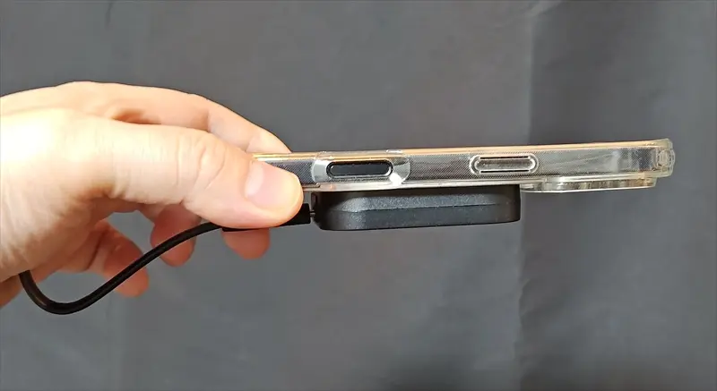 MagSafeに対応し、iPhoneの裏側にくっつけて使える