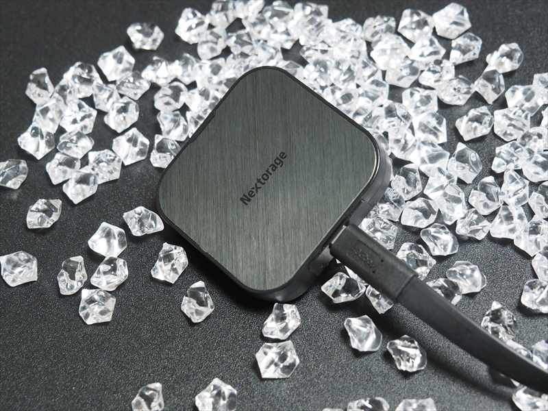 Nextorageの「NX-P4MGシリーズ」(以下、NX-P4MG)は、MagSafe対応のTLCを採用した小型ポータブルSSDだ。最新のUSB4に対応し、40Gbpsの高速転送が可能。容量は1TB、2TB、4TBの3モデル。今回は1TBの「NX-P4MG1TB」をお借りした。