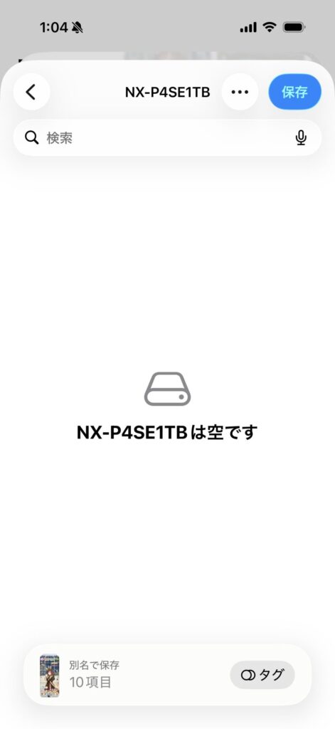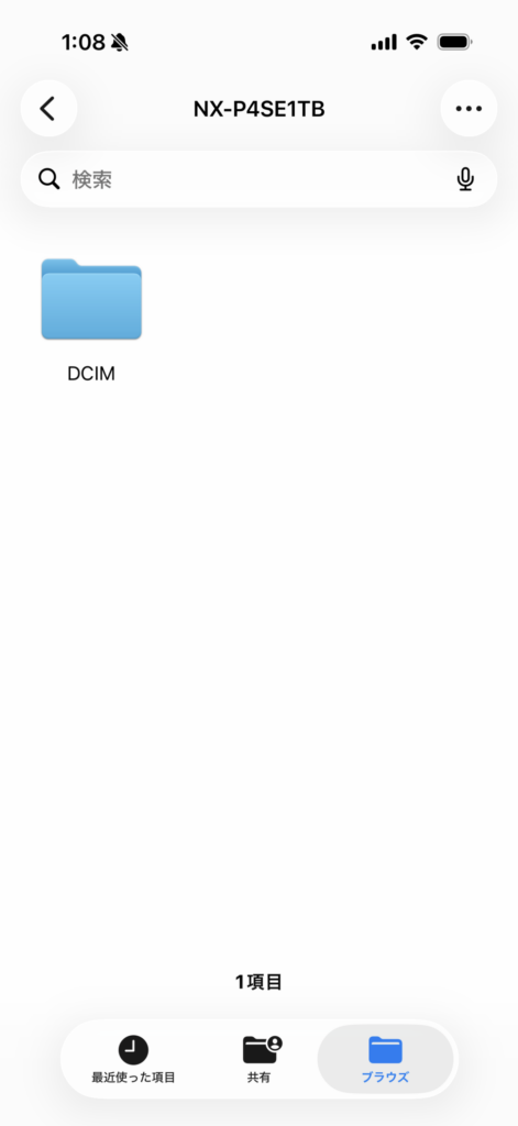 iPhoneでは、接続するだけで外付けのストレージとして認識する。「ファイル」から「ブラウズ」を開くと、表示されていれば、きちんと認識している。