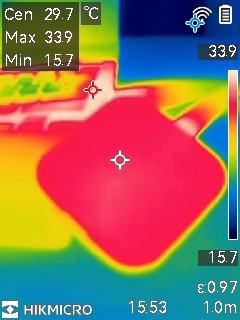 そのため、「CrystalDiskMark 9.0.1」の1回目と、連続して3回計測した際の3回目の結果を確認し、どれぐらい速度が落ちるのかを見てみた。また、その時の温度もサーモグラフィカメラで確認してみた。