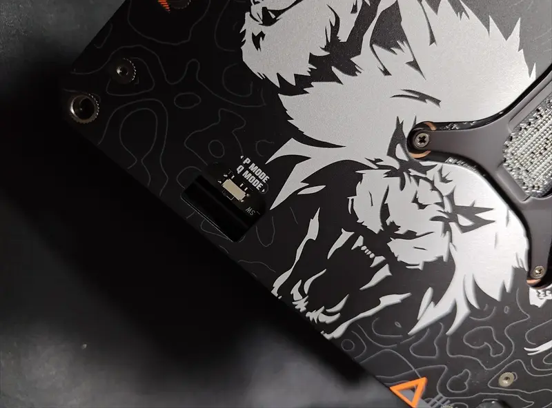 バックプレートのキメラのアイコンの下にDual BIOSの切り替えスイッチがある