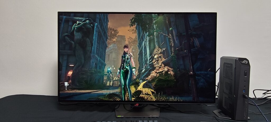 多機能なため価格はネックだが、価格に見合った性能。『Stellar Blade』をプレイしてみたけれど、光りの表現なども美しく、IPSパネルと比較すると割と感動。デュアルモードでFHDなら480Hzまで向上するなど隙がなく、美麗な3DアクションのAAAタイトルから、FPSまで幅広くOLEDの表現力で遊びたい人にオススメできる1台だ!