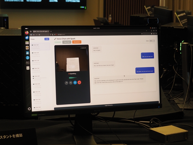 デモでは、チャットボットを使った会話による、リアルタイムアシスタント機能が紹介された。音声認識、LLM、音声合成、そうしたたくさんのAIモデルが同時に動き、遅延なくリアルタイムに音声での質問にチャットが音声で返答していた。