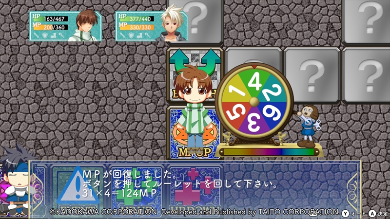 本作では特定のイベントで、すごろくを行い競っている相手とバトルすることも。仲間全員と望むこともあるが、特定の仲間と主人公のみで挑むこともあるので、主人公の戦闘術か物理魔法は、きちんと伸ばしておいた方が良い。