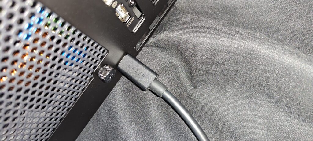PCを再起動する際に「Razer Core X V2」側の映像出力ポートにディスプレイのケーブルを接続すれば、問題なくドライバーが動作していればディスプレイに映像が表示される。