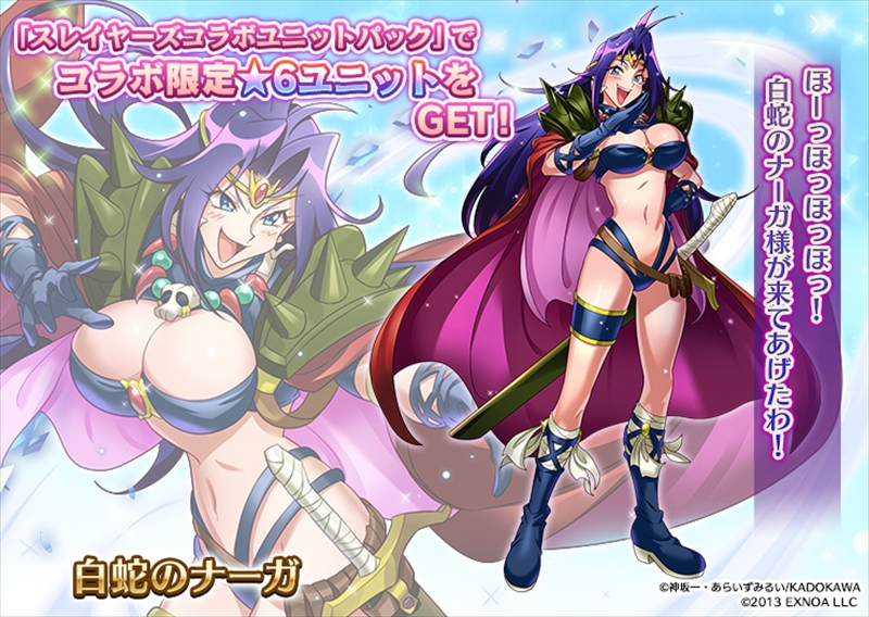 召喚などに使える「神聖結晶」や、レアリティブラックのコラボユニット『白蛇のナーガ』などがおまけについた、「スレイヤーズコラボユニットパック」を期間限定で販売する。期間は2月5日(木)メンテナンス後~2月19日(木)メンテナンス前まで。