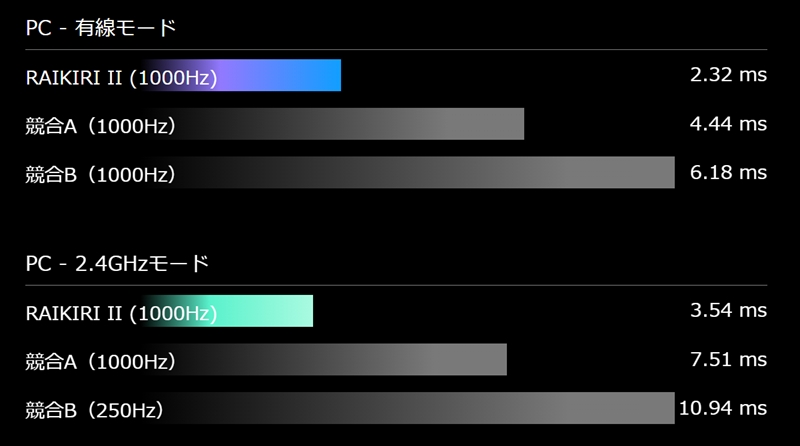 さらに、ROG SpeedNovaワイヤレステクノロジーにより、PCとワイヤレスで接続する際に1000Hzのポーリングレートで、ゲームプレイに有効な低遅延を実現する。