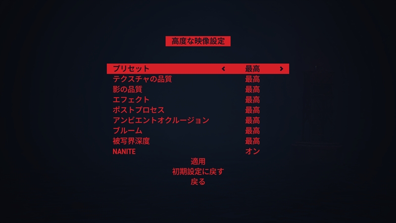比較するとプリセットを落とすと、影の付き方や光りの表現が確かに変わるが、『REANIMAL』はホラーゲームのため、元々暗いシーンが多い。ホラーと言えば、砂嵐のテレビなどをイメージするように、逆に明瞭でない方が怖さが増長することもあると考えれば、プリセットを「中」で遊ぶ方が操作の快適度を取るならアリといった感じだ。