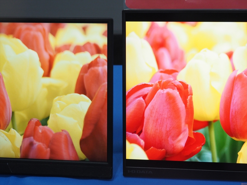 比較すると、明らかに「LCD-YC163DX」の方が色鮮やかだ