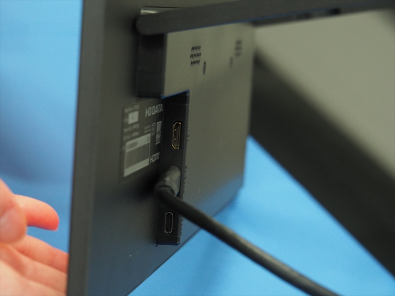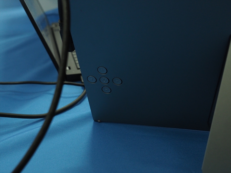 一般的なモバイルディスプレイだと側面に音声調整ボタンと電源ボタン、メニューボタンが縦に並んでいて、小さくて操作し辛いこともあるが、背面に直感的操作できるように並んでいるため、操作し易いと感じる人もいそうだ。