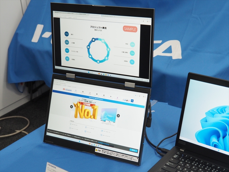 アイ・オー・データ、約490gの軽量モデルや14インチ2画面モデルの参考出展など、最新モバイルディスプレイをお披露目