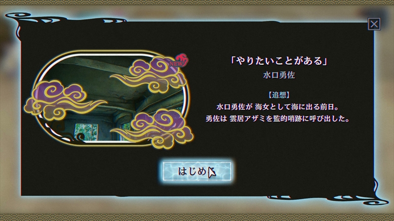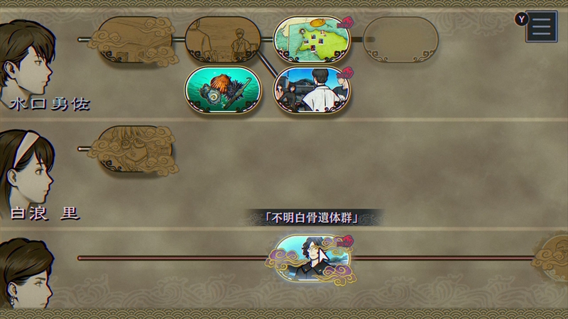 今回は平安時代から語り継がれてきた「人魚伝説」がテーマで、伊勢湾に浮かぶ「亀島」に代々伝わる”呪い”と人魚の謎を調査することになる。複数のチャプターを読み進め、ときには他のチャプターに影響を与えながら、複雑に絡み合った真相を解明することが目的だ。