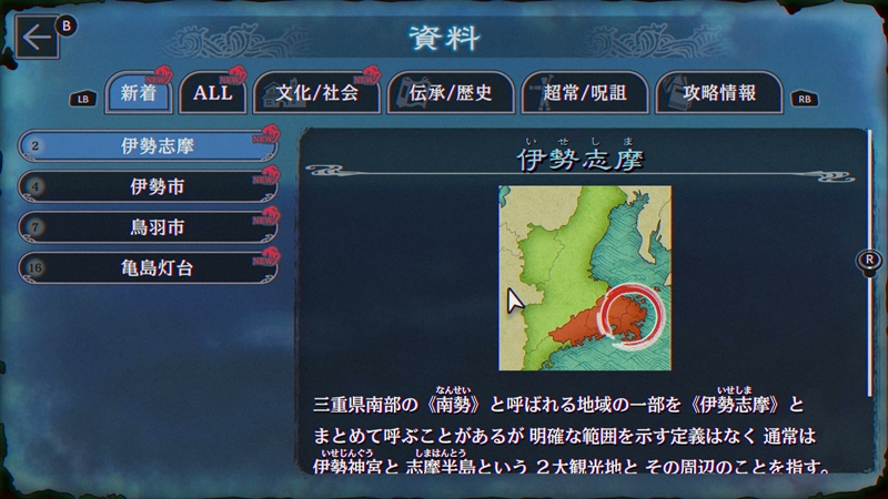 『パラノマサイト FILE 38 伊勢人魚物語』のゲームシステムは、前作とほぼ変わっていない。ポイント&クリックで気になる箇所を調べたり、キャラクターと会話をしたりしてストーリーを進める形式だ。そのほか、360度見回せる背景も、関連する伝承やオカルトネタを網羅した「資料」も前作と同じである。