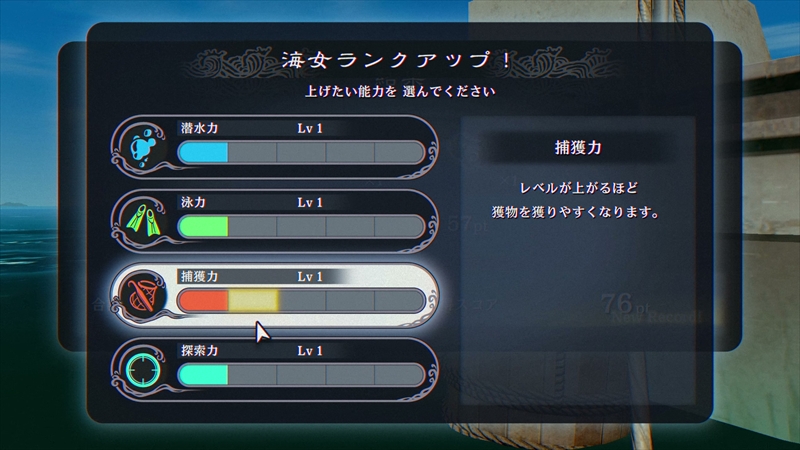 ただのミニゲームかと思いきや、海女ランクを上げる、海産物の図巻をコンプリートさせる、能力を強化するなど、無我夢中で遊びたくなるような魅力があった。シンプルな内容ながらも中毒性が高いため、ストーリーそっちのけで素潜りに興じる自分がいた。アクション性の高いミニゲームを用意するとは驚き以上の何物でもない。