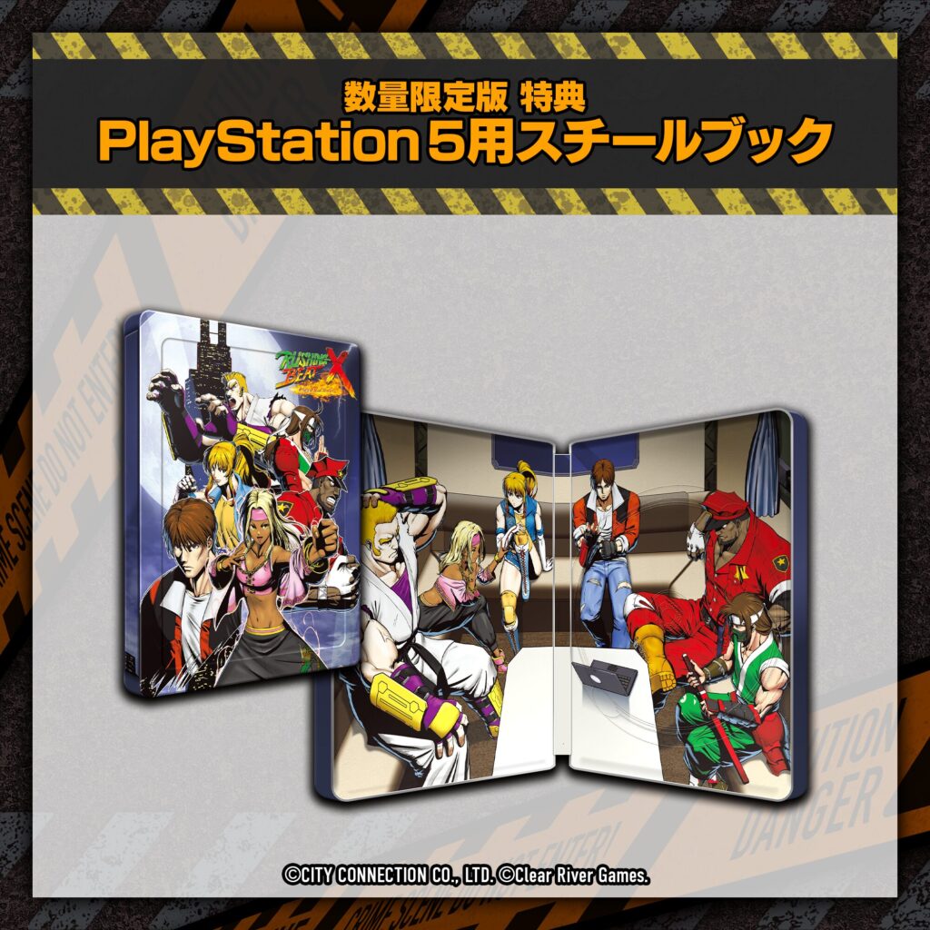 本作のBGMに加えて、歴代『ラッシング・ビート』シリーズや関連ジャレコ作品からのセレクト楽曲も収録したCD「RUSHING BEAT X & JALECO ORIGINS SOUND COLLECTION」付き!キャラクターの技表などのお役立ち情報や、クリエイターズコメントなどひみつ情報も満載なスペシャル冊子(デジパック+中綴じブックレット32P)。