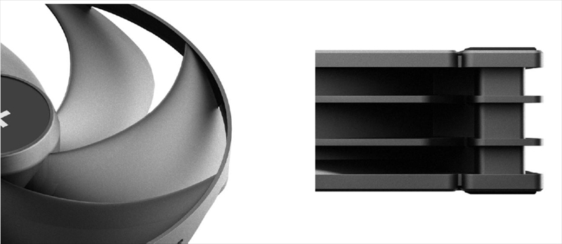ファンブレード先端を部分的に一体化した「セミ・インテグラルブレード」構造を採用。ブレードとフレームの隙間をシールし、エアフロー効率を最適化し風量・静圧を強化している。静音性も高められ、音響特性の最適化により、音質そのものを改善。耳に優しいサウンドプロファイルを実現していると謳う。さらに、ブレード全体の剛性を高め耐久性を向上しながら、共振を抑制し静音動作を行えるとしている。