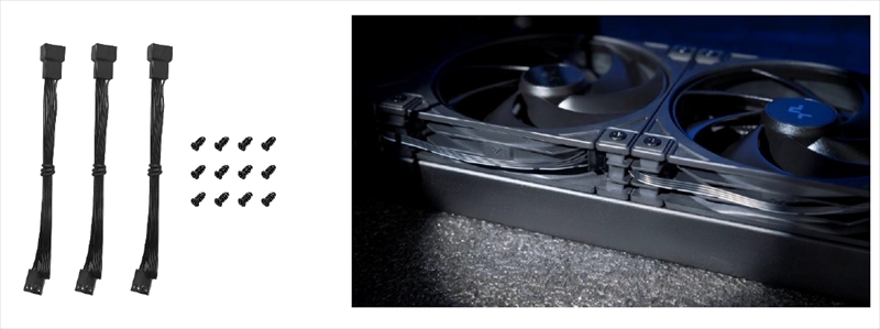 「FD12 V2」はデイジーチェーン接続に対応。ファンフレーム四隅のカットアウトにより、コネクタをスマートに隠すことができ、ケーブル配線もすっきりまとめられるとのこと。