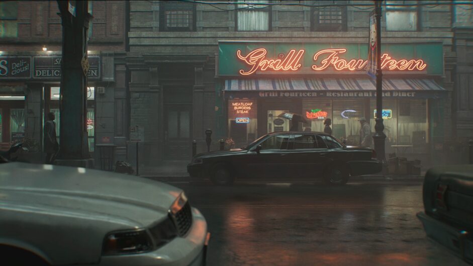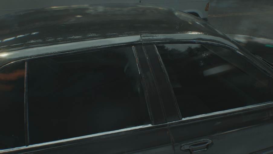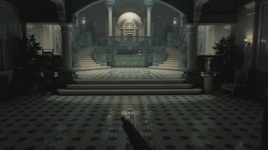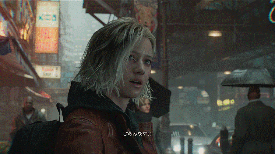 まずは『BIOHAZARD requiem』におけるパストレーシングとレイトレーシングの差異をご覧いただこう。次のスクリーンショットはゲーム開始直後くらいのカットシーンから引用している。レイトレーシング設定は後述する検証用設定に合わせているので、画質を軽くした設定である。