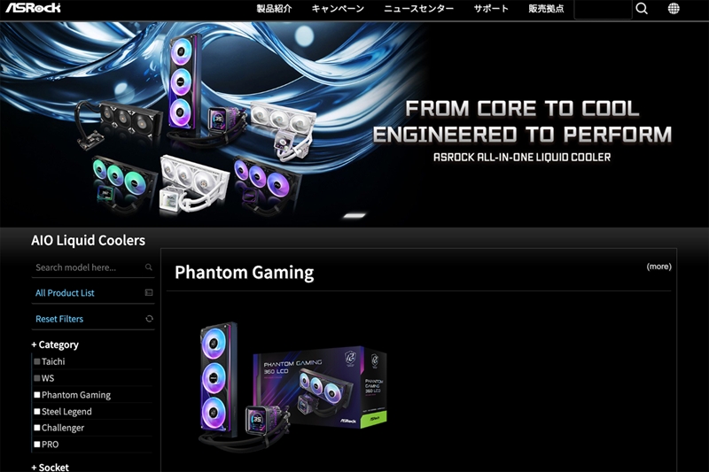 そんな水冷CPUクーラー市場に、マザーボードやビデオカード、コンパクトベアボーンなどで知られるASRockが参入した。同社は最上位のTAICHIブランドに属し、38mm厚のラジエーターを採用する「TAICHI AQUA 360 LCD」をはじめ、Phantom Gaming、Steel Legend、Challenger 、Pro、さらにワークステーション向けのWSといったASRockおなじみのセグメントで製品を展開し、全製品6年保証が謳われている。