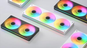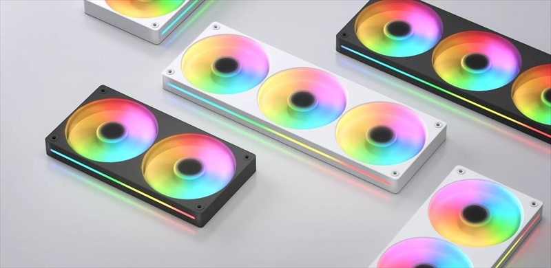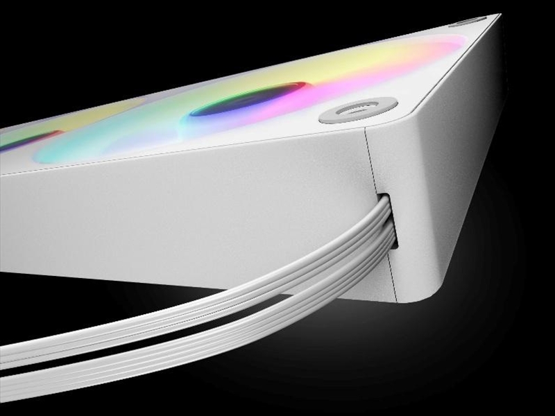 本製品は複数のファンがシングルフレームで一体化していることで、接続に必要なケーブルも2本のみと取り付けもシンプルで、かつファン速度やRGBライティングも一律でコントロール可能。ファン回転数はPWM制御に対応し、マザーボードのソフトウェアで同期ができるようになっている。
