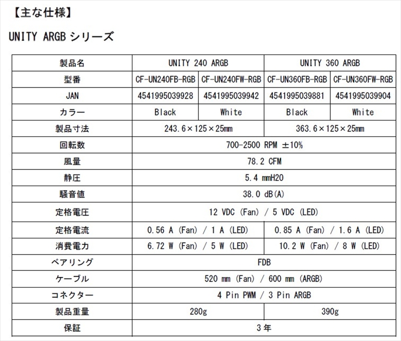 COUGAR公式:https://cougargaming.com/ja/products/cooling/unity-argb-reverse-blade/