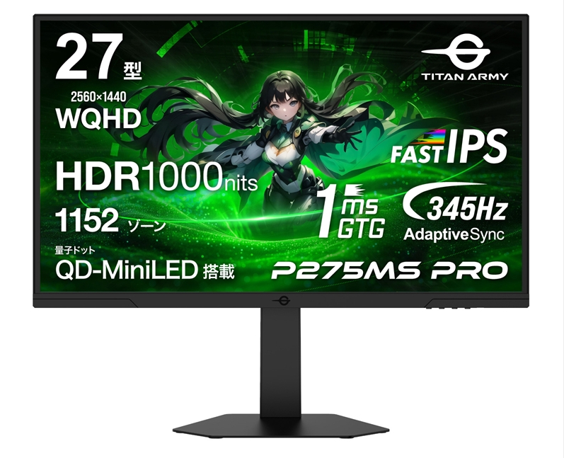 TITAN ARMY、Mini LED&345HzのWQHD27インチゲーミングモニター「P275MS PRO」を3月20日に発売