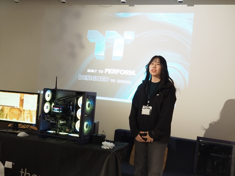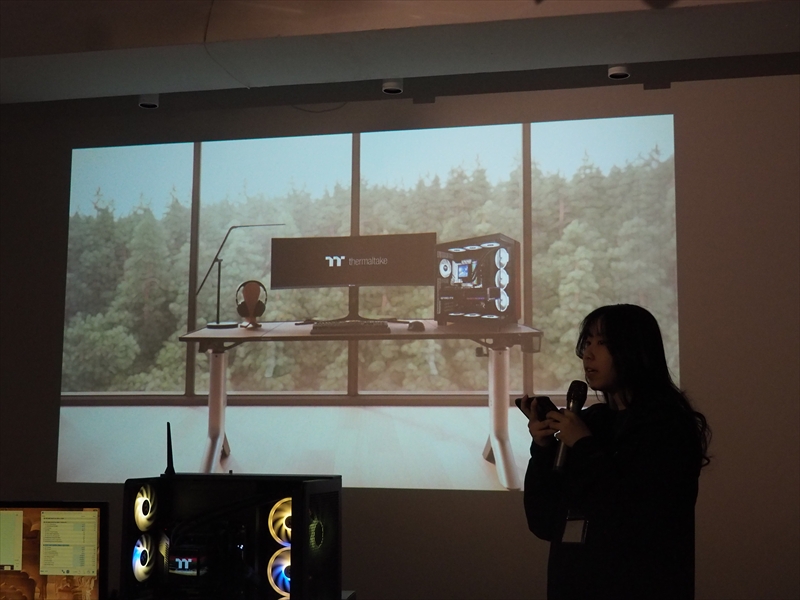 Thermaltakeは、2026年3月14日に秋葉原にあるLIFORK 秋葉原Ⅱにて「Thermaltake新製品発表会2026」を開催した。一般来場者様向けセッションの前に実施したメディア向けセッションでは、ThermaltakeのMeiさんと、Helenさんが登壇し、新製品の紹介を行った。