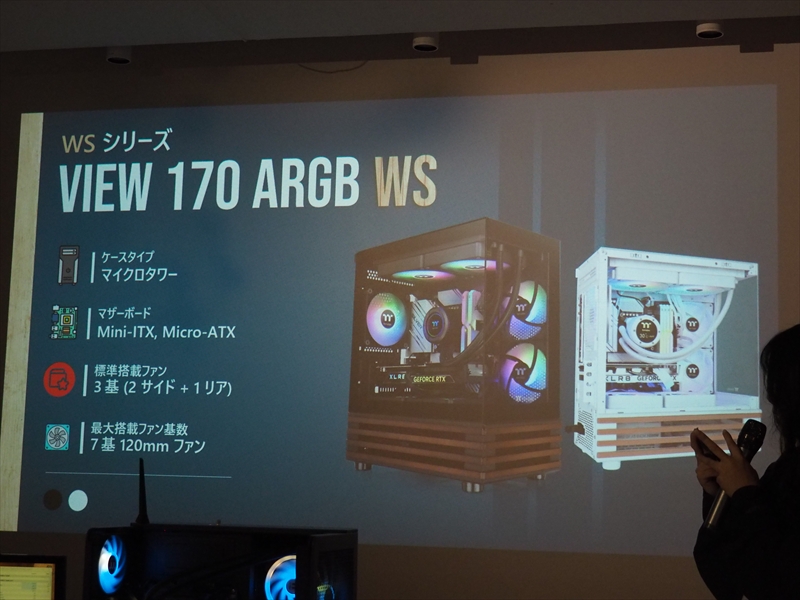 View 170 WS ARGBも2025年12月19日に発売されたmicroATX、Mini-ITXのマザーボードに対応したマイクロタワーのピラーレスケース。標準で3基のARGBファンを搭載し、最大7基のケースファンが実装できる。また、280mmまでのラジエーターを取り付けられる。海外では380と270が人気だが、日本ではこの170がかなり人気とのこと。
