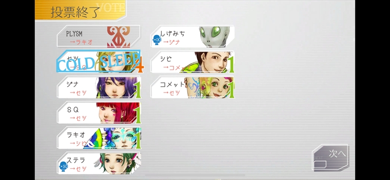 1プレイ15分ほどの、いわゆる「人狼ゲーム」を繰り返し行いながら物語を進めていきます。