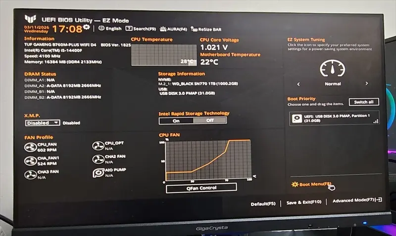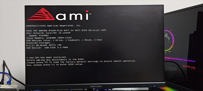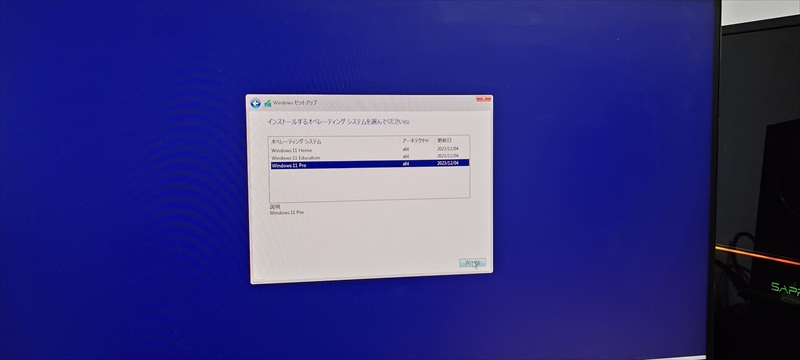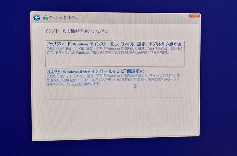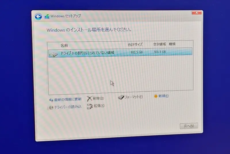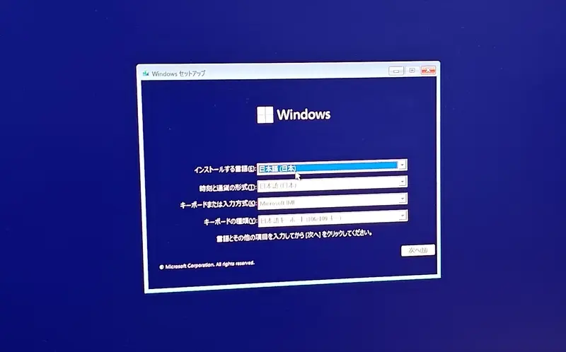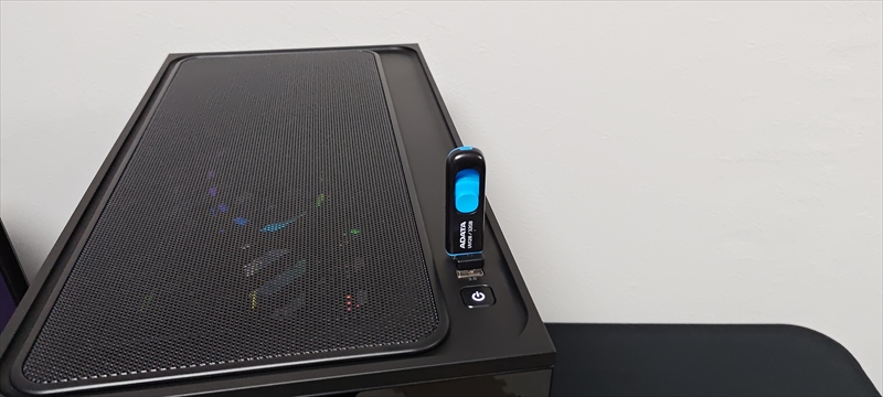 今回は事前にデータを消したSSDを使用している。OSは純正のUSBメモリではなく、作成したインストールメディアを使用している。