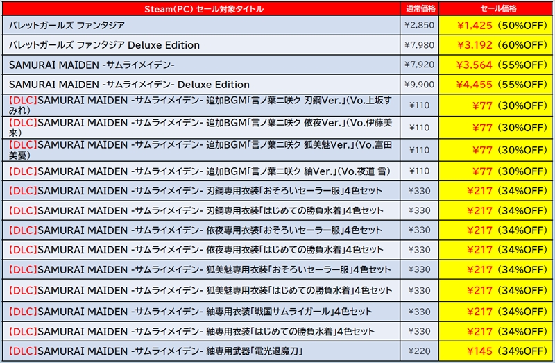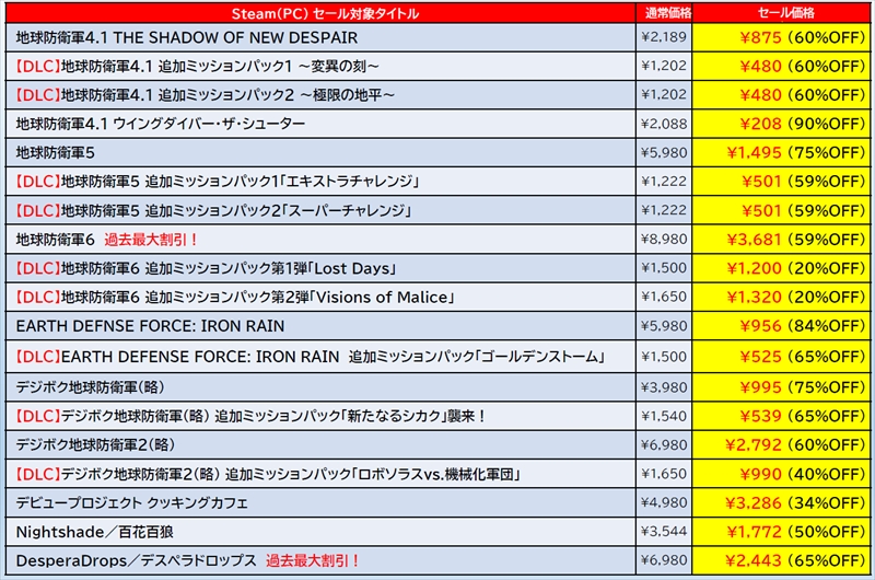 ディースリー・パブリッシャー(D3P)は、Dogenzaka Labの人気タイトルも含んだSteamセールを実施中と発表した。『地球防衛軍6』が過去最大割引&EDFシリーズのゲーム本編と追加ミッションがまとめて大特価となり、『サムライメイデン』、『オメガラビリンス ライフ』の各種DLCもお買い得とのこと。